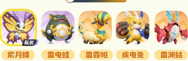 推薦搭配組合如下:紫月蝶、雷電蛙、雷露帕、疾電免以及雷淵蛄。