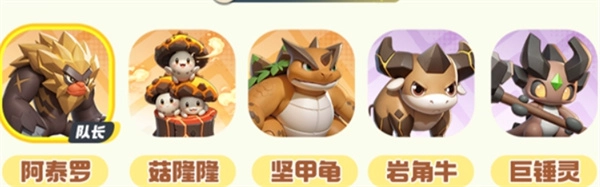 推薦搭配組合為:阿泰羅、菇隆隆、堅甲龜、巖角牛以及巨錘靈。