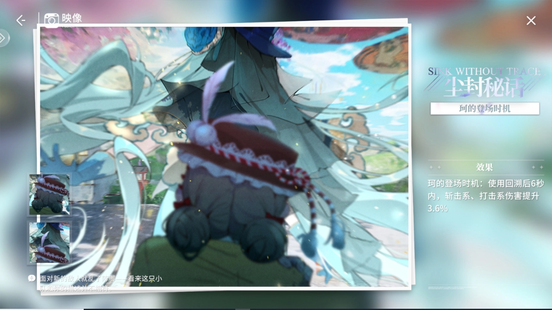 初級效果:施展回溯后的6秒時間里,斬擊系與打擊系的傷害會提高3.6% 。