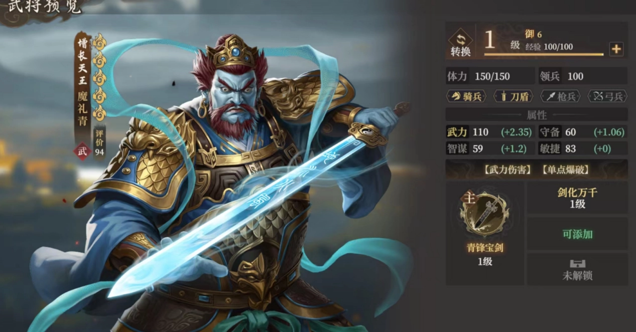 武將替換方面,要是沒有韋護,魔禮青或者高蘭英可作為替代選擇。魔禮青自身攜帶術法【劍化萬千】,能造成等同于庚金層數(shù)乘以28%的武力傷害。其靈寶則可造成460%武力傷害,且額外附帶2層庚金。一輪術法與靈寶技能施展下來,可打出648% - 676%的超高武力傷害。而高蘭英得借助靈寶技能來引爆庚金層數(shù),再加上她面板數(shù)值不高,實際產(chǎn)生的效果相比之下稍差一些。