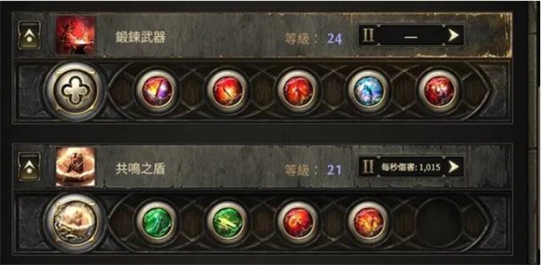 主要輸出技能包含:鍛造武器(此為主技能)以及盾牌回想(觸發形式)