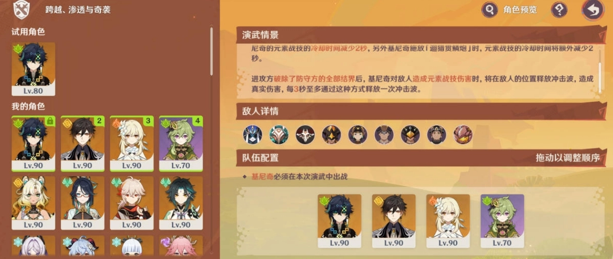 亦或是在確定基尼奇后,攜帶勇者套的角色1名,搭配1名各類輔助角色或能掛草(可吃到勇者套效果)的角色即可,像鐘離、柯萊這類角色都可以。
