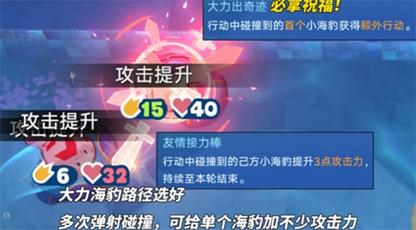 搭配祝福:《大力出奇跡》(首次命中海豹時,可額外獲得1次行動機會)。