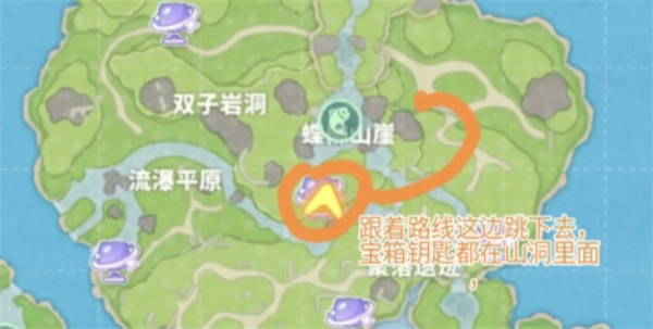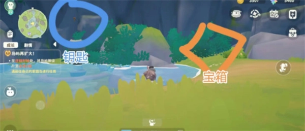 鑰匙所在之處:去往溪柳小島的蝶岸山崖區(qū)域,沿著主干小路向前走,就能在路邊看到發(fā)光的物體,那便是鑰匙。