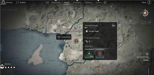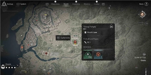 本篇由哪位行家分享的是《刺客信條 影》中,和泉攝津區域【天王寺】失落卷頁的位置。游戲內寺院眾多,在每個寺院都能找到失落的卷頁。