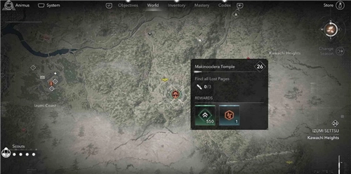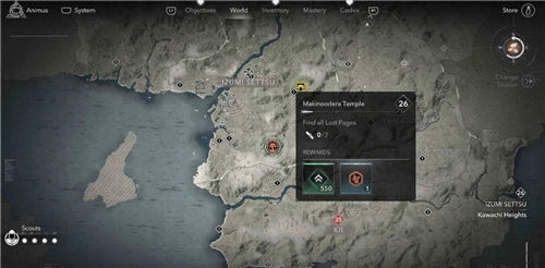 本篇由哪位行家分享的是《刺客信條 影》中和泉攝津區域【槙尾寺】失落卷頁的位置。游戲中有較多寺院,在每個寺院都能找到失落的卷頁。
