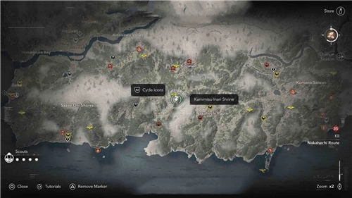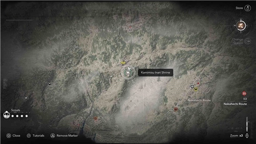 《刺客信條 影》中的傳奇墨繪總計有五幅,分別為傳奇三猿、傳奇銀狐、傳奇丹頂鶴、傳奇櫻鹿以及傳奇白貍。在這五幅墨繪里,有四幅會在春、夏、秋、冬四個季節中,每個季節各隨機刷出一幅,而且傳奇動物的刷出具有概率性。本文要分享的是傳奇銀狐的位置。