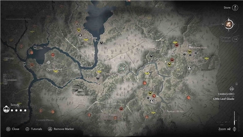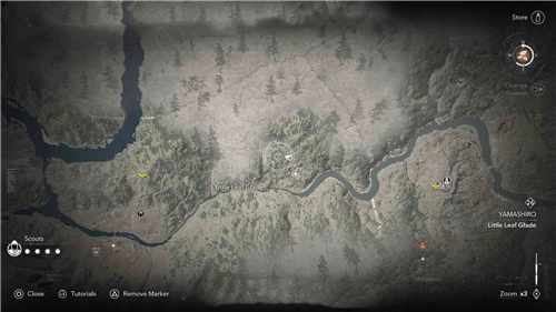 在《刺客信條:影》里,傳奇墨繪一共有五幅,它們分別為傳奇三猿、傳奇銀狐、傳奇丹頂鶴、傳奇櫻鹿以及傳奇白貍。這五幅墨繪當(dāng)中,有四幅會(huì)在春、夏、秋、冬這四個(gè)季節(jié)里,每個(gè)季節(jié)各刷出一幅,不過(guò)傳奇動(dòng)物的出現(xiàn)是有概率的。本文要分享的是傳奇三猿的位置。