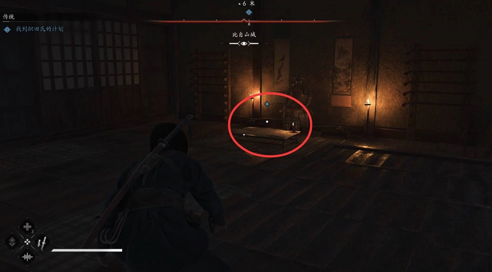 進入營地之后,往右邊轉,從房子側面的窗口進去,尋找織田氏的計劃。