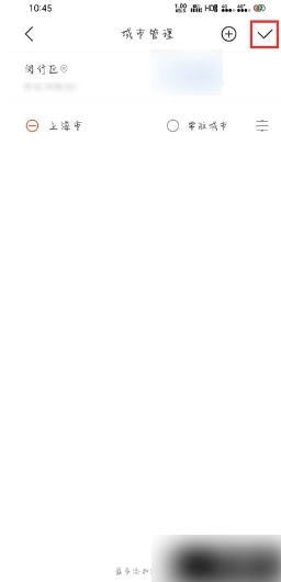 5、完成城市刪除操作后,點(diǎn)擊右上角的【√】按鈕,以完成并保存修改。