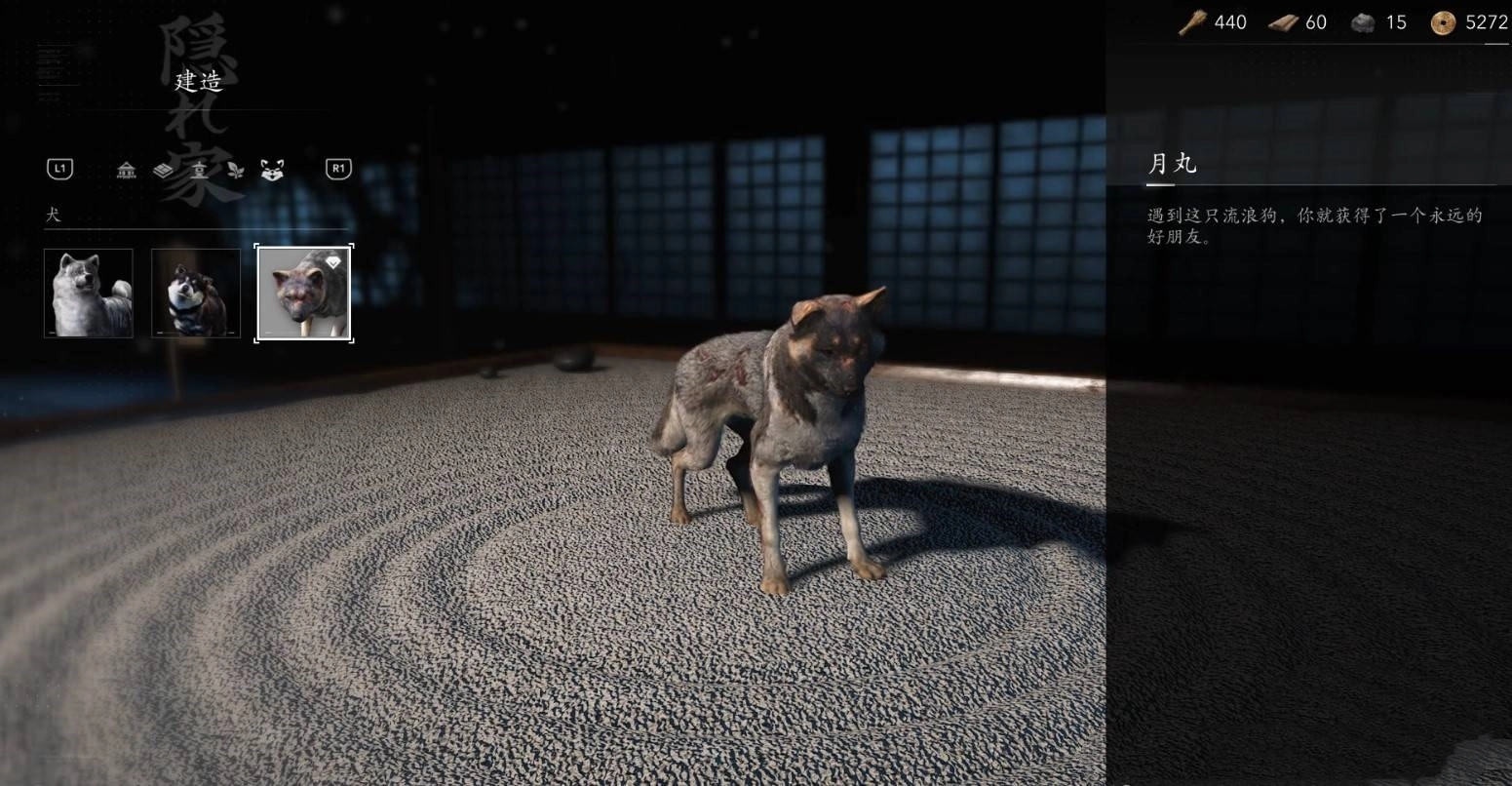 完成該任務后,在藏身處的建造模式里,就能看到小狗月丸了。我們可以把它放置在房間中自己想要的位置上。