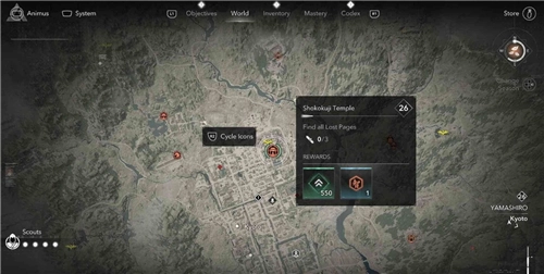 本篇要給大家分享的是《刺客信條》影山城地區相國寺失落卷頁的收集位置。相國寺坐落在京都,此地共有3個失落卷頁。