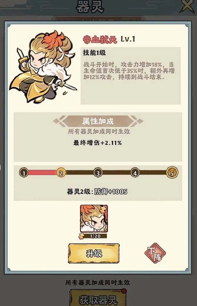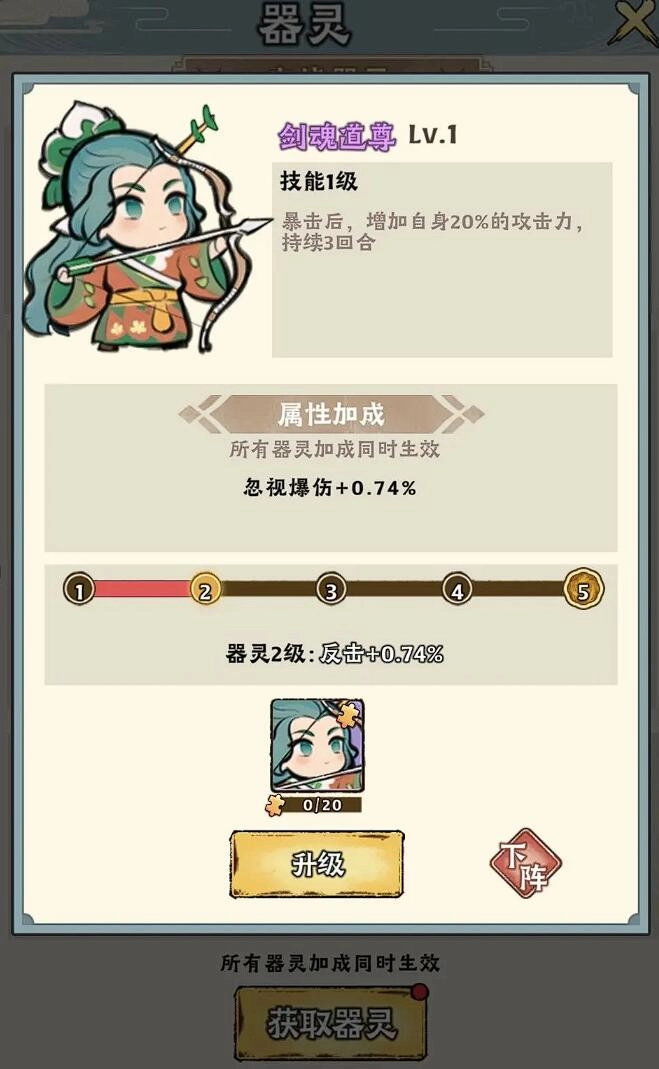 1、劍動追尊的器靈是做任務免費贈送的,觸發暴擊后,攻擊力能提升20%,且該效果可持續三個回合。在游戲前期刷小怪時,它的表現尤為出色,一旦觸發暴擊效果,清圖效率瞬間大幅提升,刷打野狗妖洞這類副本,體驗感超棒。