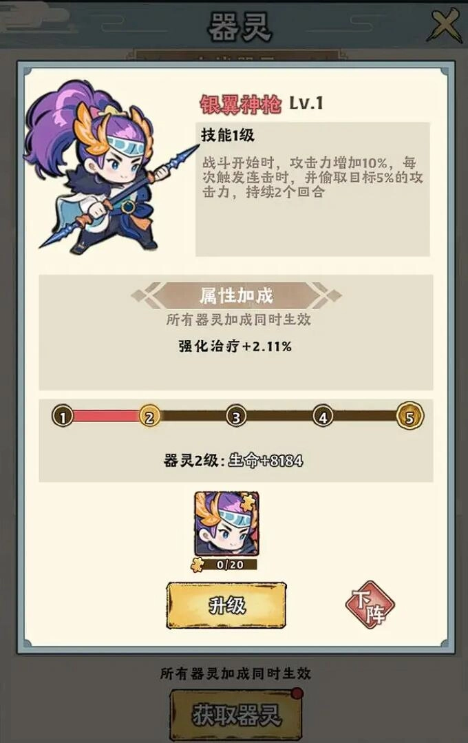 3、銀翼神槍這東西,公會日常就能免費獲取。開局就能增加10%的攻擊力,還能偷取對面5%的輸出。組隊刷本的時候效果超棒,隊友的傷害瞬間提升。偷來的攻擊力能持續兩回合呢,去混團隊副本帶上它肯定不會錯。