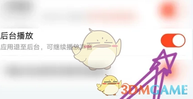 3、最后,在軟件設置頁面,點擊圖中紅色圓圈所標記的“后臺播放”右側的開啟按鈕即可,具體如圖所示。