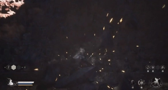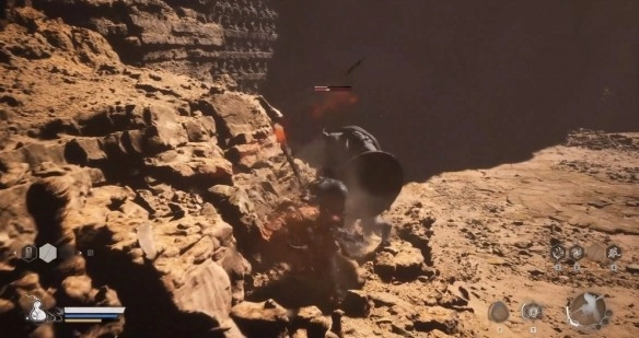 4、當所有小怪都被成功擊敗后,原本被石墻阻攔的遠程墻壁上會產生新的裂縫。靠近裂縫并按下“互動鍵”,就能進入隱藏的山洞。