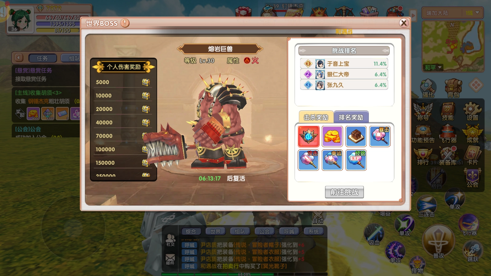 世界BOSS:首殺掉落英雄徽章(可鑄造紅色英雄裝)。