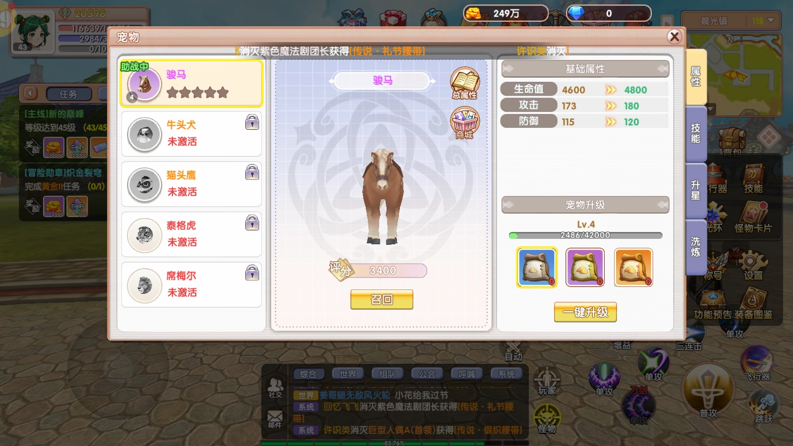 成就系統(tǒng):達(dá)到600點(diǎn)成就免費(fèi)送寵物,優(yōu)先完成強(qiáng)化/等級(jí)類任務(wù)。