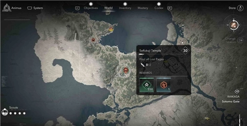 本篇要給大家分享的是《刺客信條》中影若狹地區西福寺失落卷頁的收集位置。西福寺處于蘇洞門,此地共有2個失落的卷頁。