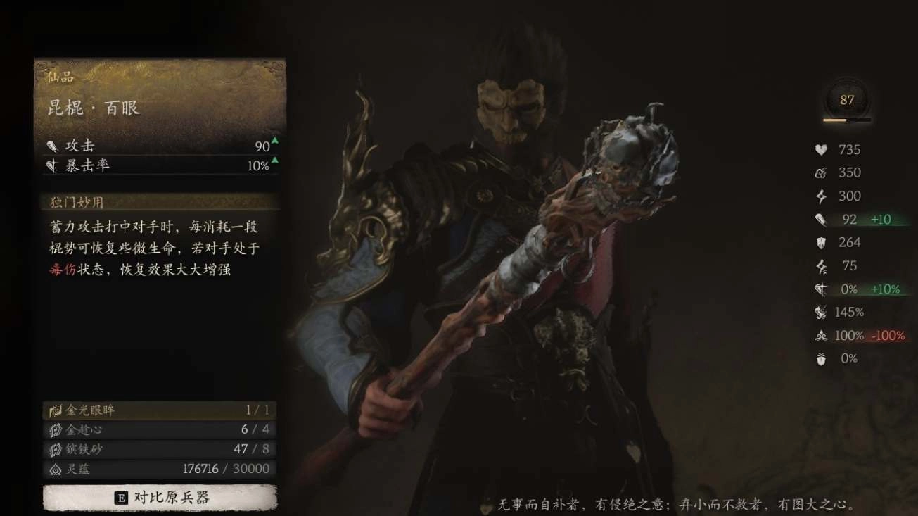 3、仙品武器昆棍·百眼:當成功通關第四回黃花觀 - 金光苑區域,并戰勝該區域BOSS百眼魔君后,就能獲得此武器的鑄造權限。