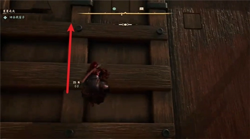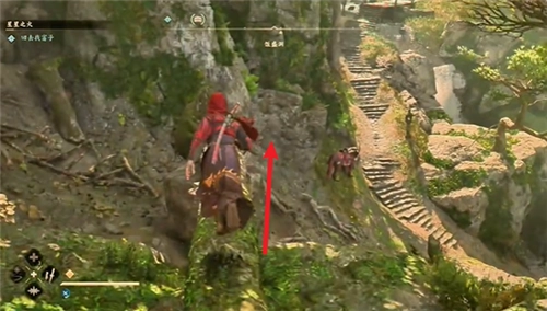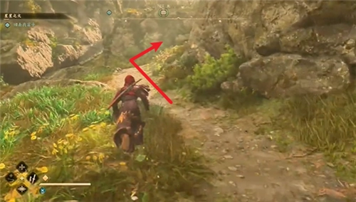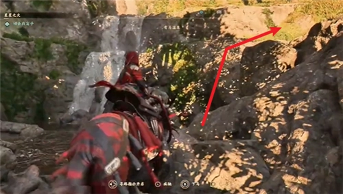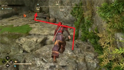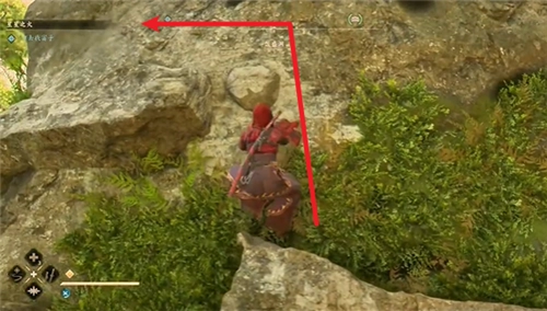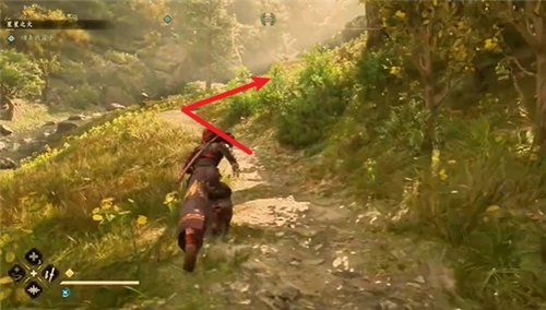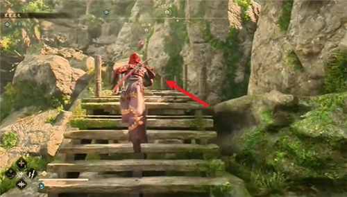 跨過木橋,接著攀爬上右側的巖石,對面平臺的一個山洞里,放置著裝有輕甲的寶箱。