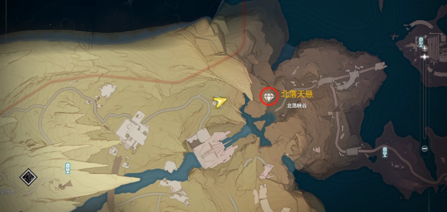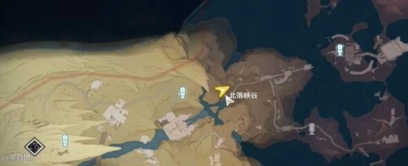 1. 首先傳送到北落峽谷左側的傳送點。該傳送點隱匿在峽谷入口的石崖邊,臨近一條狹窄的道路,參照地圖標記可迅速找到。