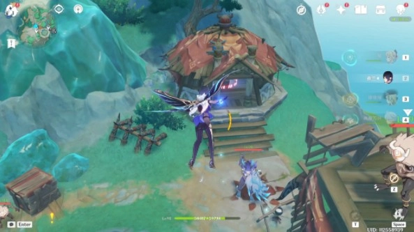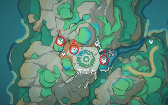 2、一號點位:從赤望臺錨點的正下方起飛,在山腰位置有一處丘丘人營地,其附近隱匿著第一個歆玉石。
