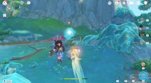 4、三號點:前往山谷最深處水中央的小島,清除島上的小怪,隨后即可找到第三塊歆玉石。