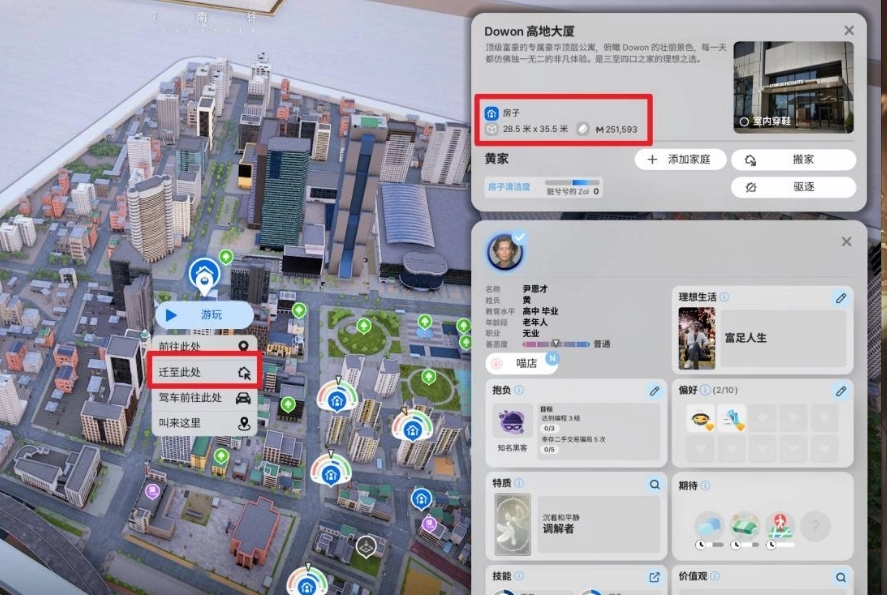 在地圖上點(diǎn)擊住房圖標(biāo),即可查看房子價(jià)格。若價(jià)格符合預(yù)期,可直接選擇【遷至此處】,將原住民驅(qū)趕出去,從而達(dá)成自身抱負(fù)。