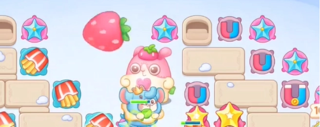 3、當沒有敵人時,可優先選擇攻擊毛線,一旦集齊三個毛線,草莓兔便會協助我們對敵人展開攻擊。