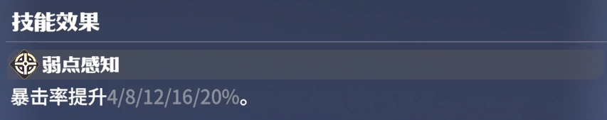 3、次級推薦2:弱點感知——暴擊率分別提升4%、8%、12%、16%、20% 。
