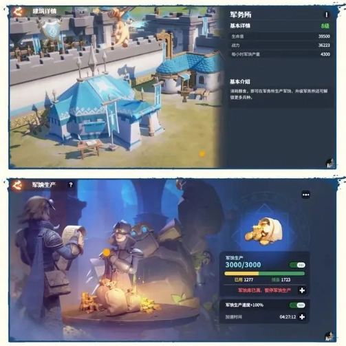 軍務所:于此處消耗糧食,便能生產出供上陣士兵使用的軍餉。而且,升級軍務所后,還能夠解鎖更多類型的兵種。