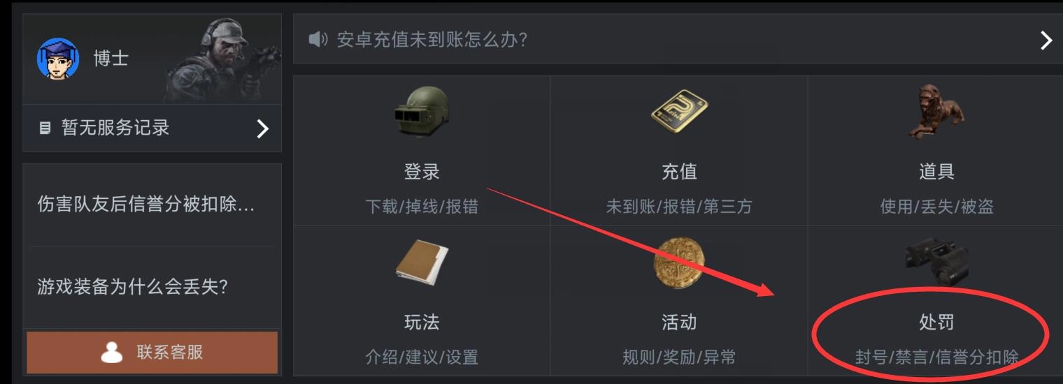 2. 在彈出的客服界面中,選取右下角的【處罰】選項。