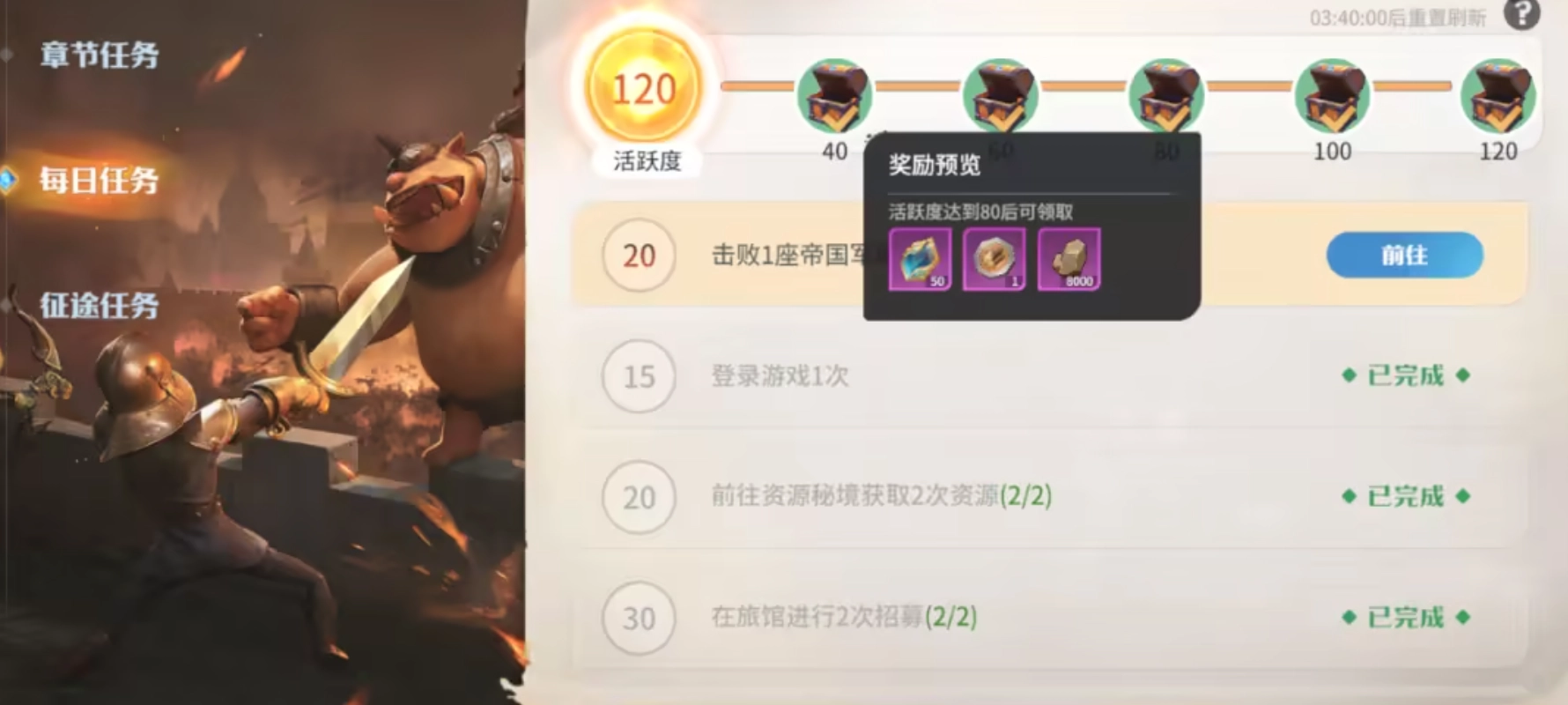 2、玩家在體驗游戲時,應積極參與日常任務。日常任務豐富多樣,比如擊敗野怪、采集資源等。玩家完成這些任務后,能夠獲取大量資源。此外,玩家還需升級資源建筑,畢竟資源建筑是獲取資源的重要途徑。