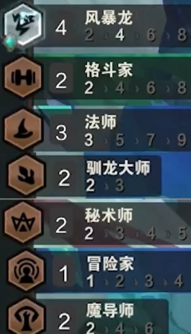 4個風暴龍、2個格斗家、3個法師、2個馴龍大師、2個秘術師、1個冒險家、2個魔導師