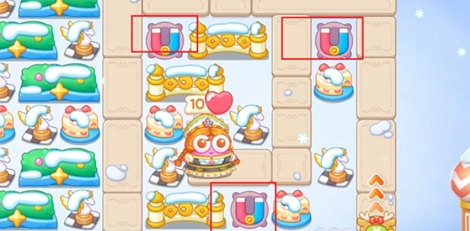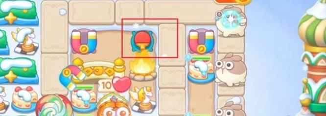 2. 進入關卡后,一開始便會出現三個吸鐵石炮塔,緊接著在中間放置一個火堆。