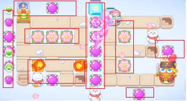 1. 在胡桃夾子的第38關里,一共有七波敵人來襲,此關卡主要選用的炮塔為魔法球。