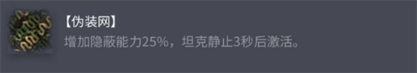 偽裝網,乃是提升隱蔽性的關鍵配件。當雷諾FT靜止三秒之后啟動,它可使隱蔽能力增強25%,助力你于草叢或者隱蔽之處更出色地隱藏自身,防止被敵方察覺。