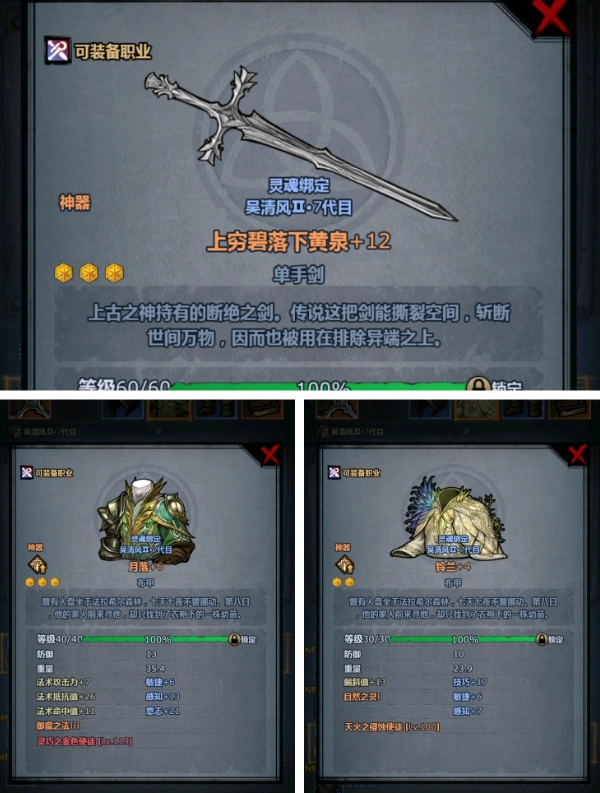 法衣:如果有條件,可以升級至三階的神器階數,保證佩神內宗的生存。