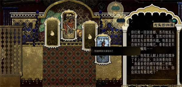 2、發動致命一擊:倘若你決定擊殺火龍,即便火龍并非真正死去,而是會轉世重生,不過你將得到龍血沐浴的機會,收獲萬民的贊頌,還能獲取戰利品。成功屠龍之后,四人小組的體魄會增加3,并且會得到“火龍頭顱”。在此之后,你可以在把龍頭獻給蘇丹與留給自己這兩個選擇中做出決定。需要留意的是:要是將龍頭獻給蘇丹,游戲便會宣告失敗。