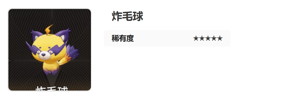 炸毛球在游戲里屬于稀有度達到五顆星的魔靈,模樣酷似卡通版小浣熊。它渾身覆蓋著黃色絨毛,耳朵、眼睛周邊、四肢還有尾巴的絨毛則是紫色。那一雙小小的眼睛總是耷拉著,一副沒精打采的模樣。然而,一旦遭遇敵人,炸毛球瞬間就會精神抖擻起來。