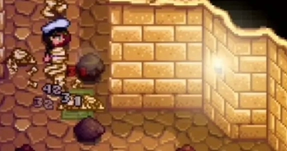3、一旦看到樓梯,直接沖過去,別在意旁邊那些沒多大價值的礦石。可以把視野調大,或者使用MOD,這樣一眼就能看清石頭和樓梯的位置。要是有多個洞口,隨意選擇跳進去就行,因為層數都是一樣的。要是速度夠快,就直接無視怪物,畢竟節省時間才是最重要的。
