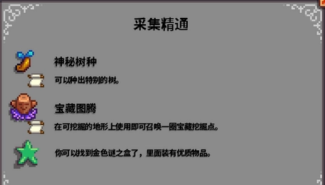 3、采集達到滿級就送三樣寶貝:神秘樹種子種下后能長出特殊木材,挖寶圖騰能召喚出隱藏的資源點,金箱子開出的物品可比普通箱子好太多了。這幾樣東西堪稱在野外生存的神器,就算是靠撿破爛,有了它們也能發家致富。