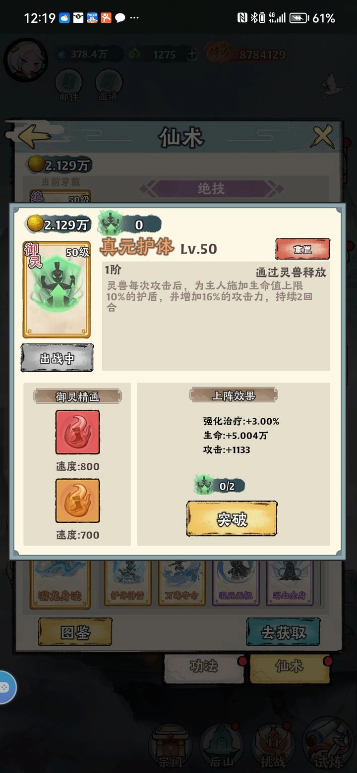 5、仙術這塊,別一門心思只盯著橙卡,平民玩家負擔不起。絕技方面,選擇八部金剛來保命,或者選生命蓮華進行回血,只有保證存活,才能打出輸出。