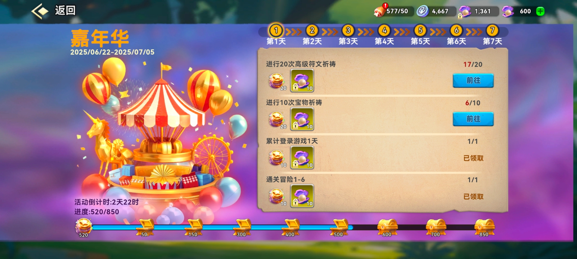 2、嘉年華活動記得要做,盡量拉滿,把所有的寶箱獎勵全拿了,送太多的綁定珍珠了,不放過官方給的任何資源。