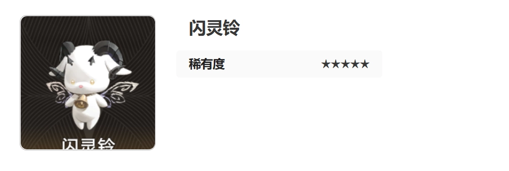 閃靈鈴與其他魔靈的稀有度相同,同樣是5星級魔靈。想必這只魔靈能俘獲眾多玩家的心。閃靈鈴的外形宛如一只可愛的小奶牛,有著純白的皮膚,脖子上系著一個精巧的銅鈴鐺,背后長著一對仿佛只有花仙子才有的翅膀,腦袋上還生出一對黑色的小牛角。單從外形來看,閃靈鈴就已勝過其他魔靈。