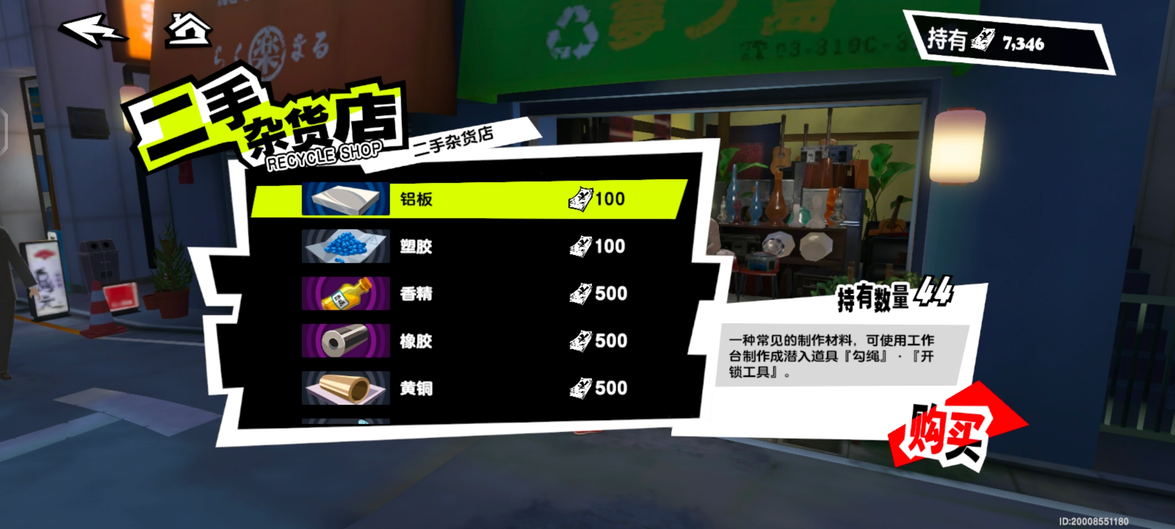 4、抵達(dá)“四軒茶屋”后,在圖示位置的二手雜貨店可買到所需材料,隨后返回工作臺(tái)進(jìn)行制作。