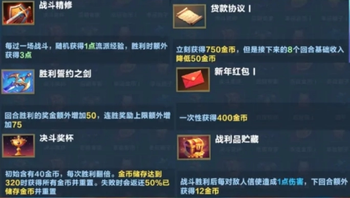 對于石英劍客而言,在神器的選擇上有不少值得斟酌的選項(xiàng)。戰(zhàn)斜精修作為連勝神器之一,若與勝利誓約之劍搭配,能為玩家的額外經(jīng)濟(jì)運(yùn)營提供更多資源。玩家在經(jīng)濟(jì)資源方面占據(jù)優(yōu)勢后,便能更迅速地購買所需卡牌、升級(jí)技能,或獲取其他關(guān)鍵游戲道具。決斗獎(jiǎng)杯、戰(zhàn)利品貯藏、貸款協(xié)議以及新年紅包,這些都能帶來經(jīng)濟(jì)優(yōu)勢。對于渴望在游戲前期就快速積累財(cái)富、取得優(yōu)勢的玩家來說,這些神器是不錯(cuò)的選擇,可用于購置強(qiáng)力的初始卡牌或道具。而且在游戲后期,每經(jīng)歷一場戰(zhàn)斗,經(jīng)驗(yàn)都會(huì)有所積累,隨著流派等級(jí)的提升,石英劍客可獲得的選擇也會(huì)越來越多。