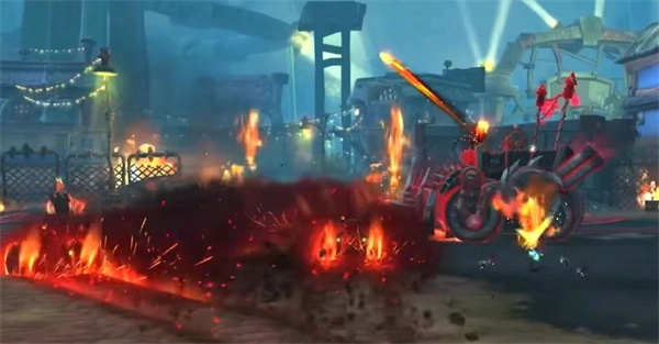 在普通難度及以上,與維克茜和磨輪戰斗并將其擊敗的過程中,利用摩托撞擊場地里的垃圾、垃圾堆、輪胎堆、工具架以及儲物箱。