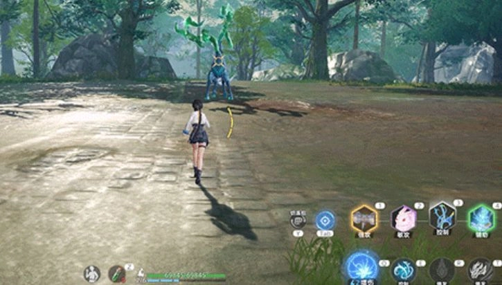 實際上,碧玉靈鹿能夠跳起來踩踏地面,此時地面會出現紅圈范圍。當玩家與之戰斗時,一旦出現紅圈,就需及時離開該區域,這正是碧玉靈鹿施展踩地技能的表現。另外,碧玉靈鹿跳到空中時,還能釋放靈火,玩家必須快速移動,使火焰攻擊落空。值得注意的是,碧玉靈鹿不但可以放火,還具備釋放冰的能力。
